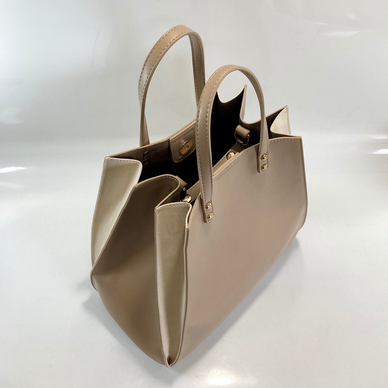 スムース調とスエードタッチの組み合わせが魅力的なコンビトートバッグです。上質な合成皮革を使用し、洗練されたデザインがスタイルを引き立てます。サイズは幅28cm高さ28cmマチが14cmとA4サイズが入る便利な大きさです。ショルダーとポーチ付きなので、実用性も兼ね備えています。普段使いやお出かけにぴったりのアイテムです。生産は中国です。