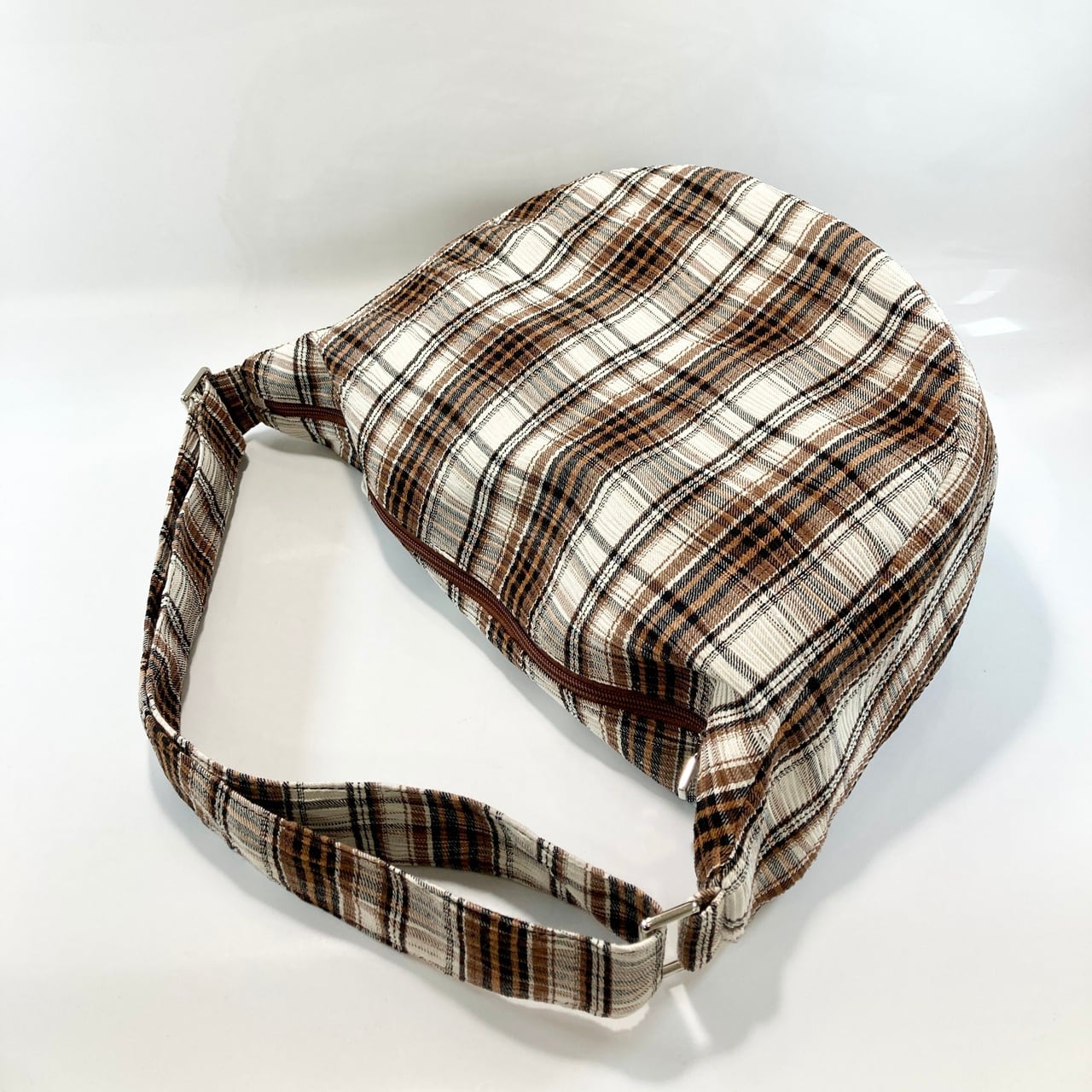 このイレギュラープリーツ加工が施されたチェック柄のワンショルダーバッグは、独特な素材感が魅力のアイテムです。ベーシックデザインながらも、スタイリングのアクセントとして引き立ちます。ショルダーは長さ調節が可能です。本体のサイズは幅33cm、高さ28cm、マチ16cmで、たっぷりと荷物を収納できます。素材はコットン/ポリエステル 原産国は中国です。