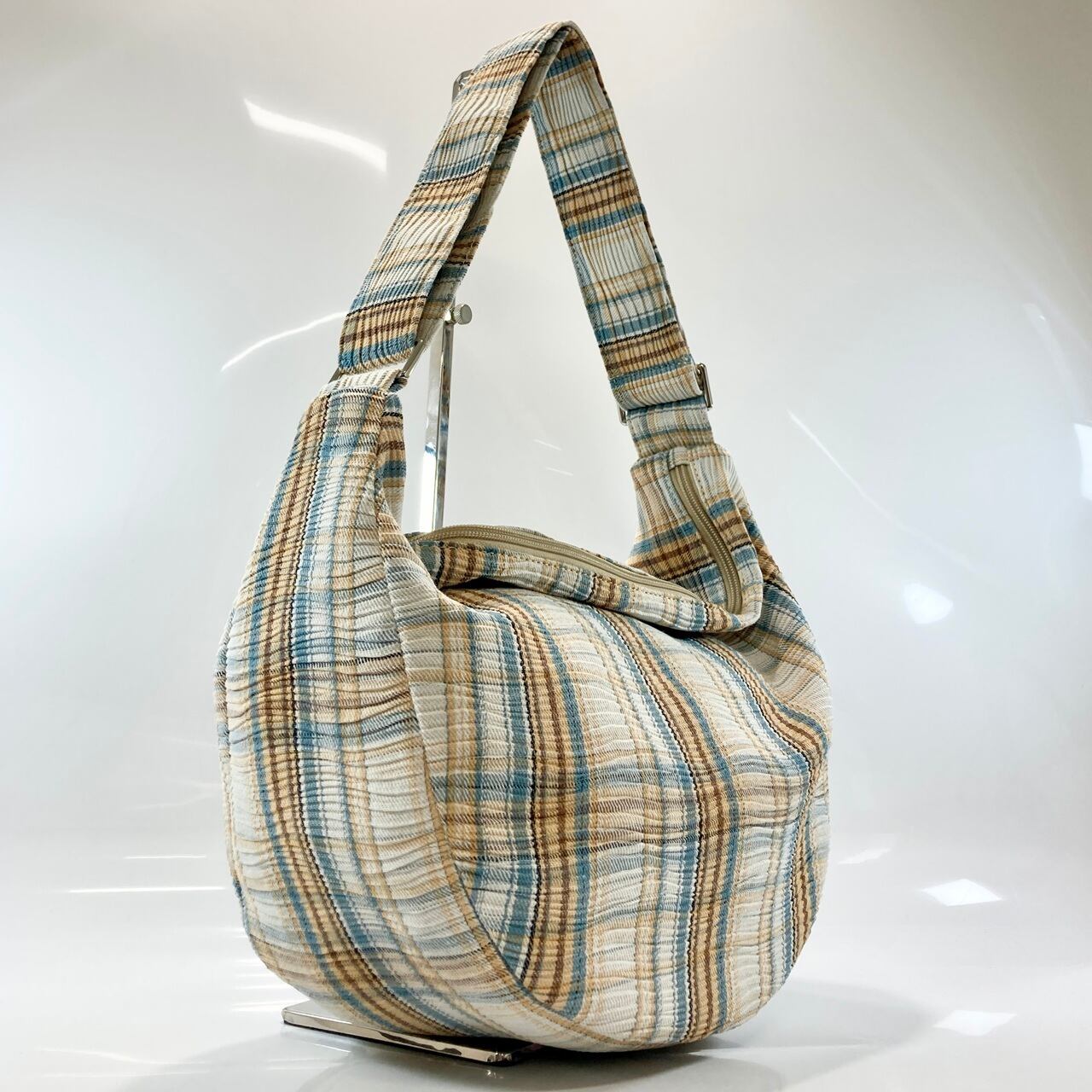 このイレギュラープリーツ加工が施されたチェック柄のワンショルダーバッグは、独特な素材感が魅力のアイテムです。ベーシックデザインながらも、スタイリングのアクセントとして引き立ちます。ショルダーは長さ調節が可能です。本体のサイズは幅33cm、高さ28cm、マチ16cmで、たっぷりと荷物を収納できます。素材はコットン/ポリエステル 原産国は中国です。