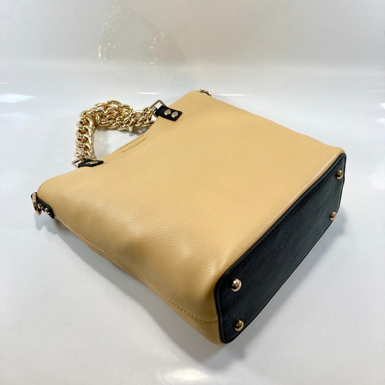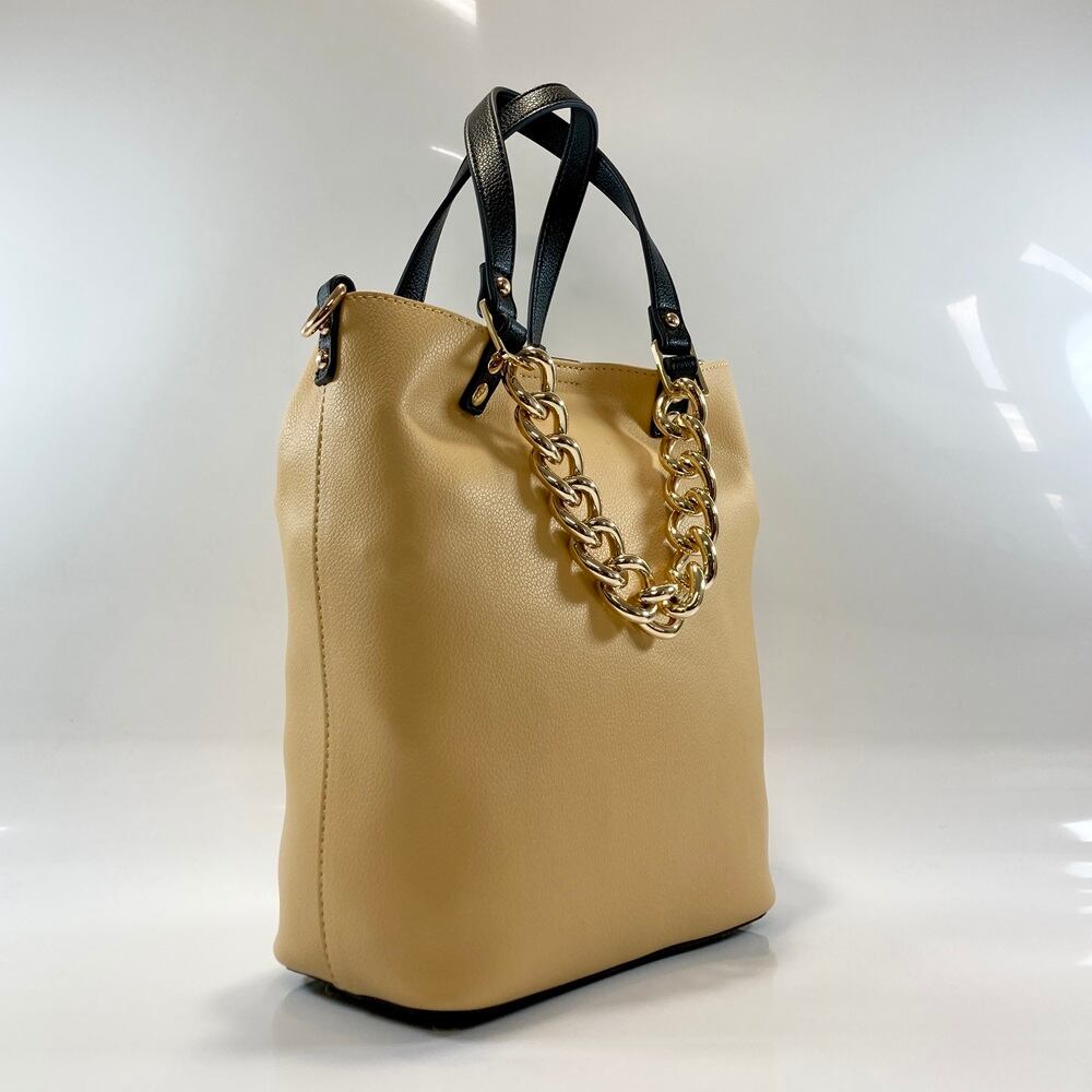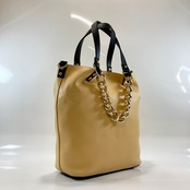 シンプルなデザインで、チェーンハンドルがアクセントになった2WAY仕様のトートバッグ。