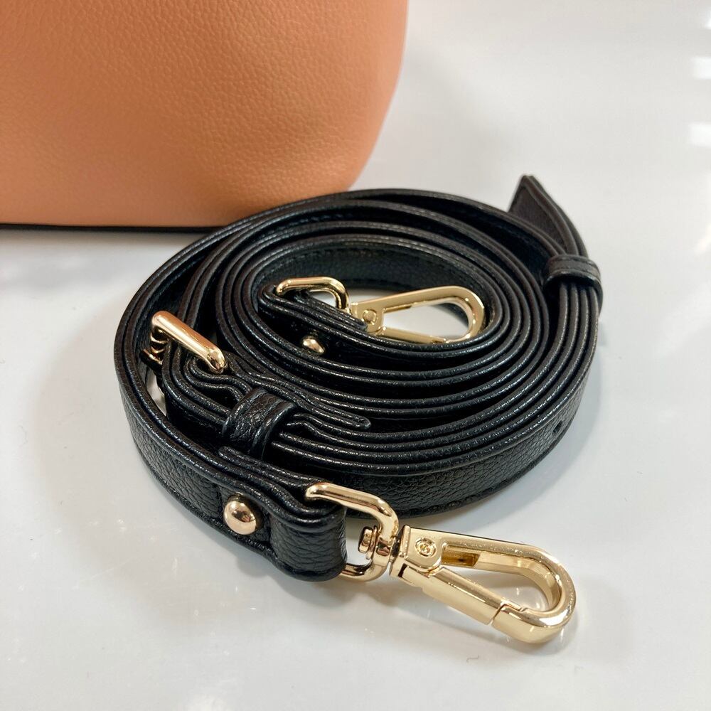 大きめなチェーンのハンドルが、デザインポイント。本体同素材の平ハンドルとの2WAY仕様になります。また斜め掛けできるショルダー付きです。